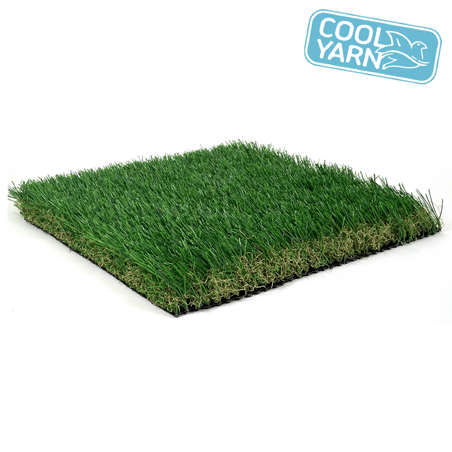 Arizona Pro Spring is a vibrant artificial grass with a Spring Green bi-color combination and a mixed green and yellow thatch. Featuring a durable mini-W blade shape and 1.7 inch pile height, this artificial grass is perfect for residential yards, playgrounds, and pet kennels.