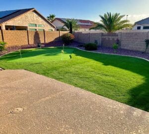 Arizona Pro featured right is a delustered, resilient, temperature-controlled artificial grass. This grass is 1.7 inches tall and exhibits finer blades than alternative products. Arizona Pro is designed to provide customers with a more natural look and feel, creating a viable alternative to a traditional St. Augustine lawn.