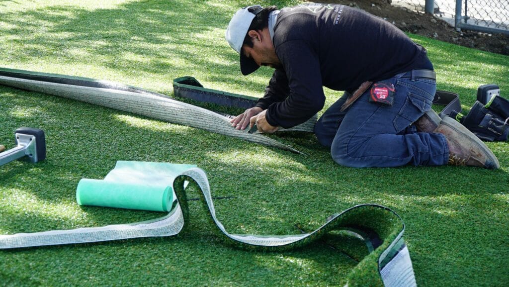 Additionally, depending on the pile height of the turf you’re installing or the foot traffic you anticipate having, you may need more infill. Also, different materials are used for different seaming methods, too, which will impact the material cost in artificial grass estimates.