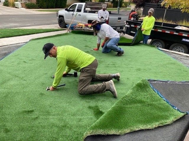 On the other hand, turnkey installation rates have a much broader range that is heavily dependent on the region you’re located and the type of application you’re installing (putting green, playground, pet run, rooftop/patio, landscape). Labor rates can also increase due to the removal of rocks and roots, or installing around them – or even from limited site accessibility that prolonged the installation. Typically, turnkey installation services for most residential application types fall somewhere between $7 – $14 per square foot.