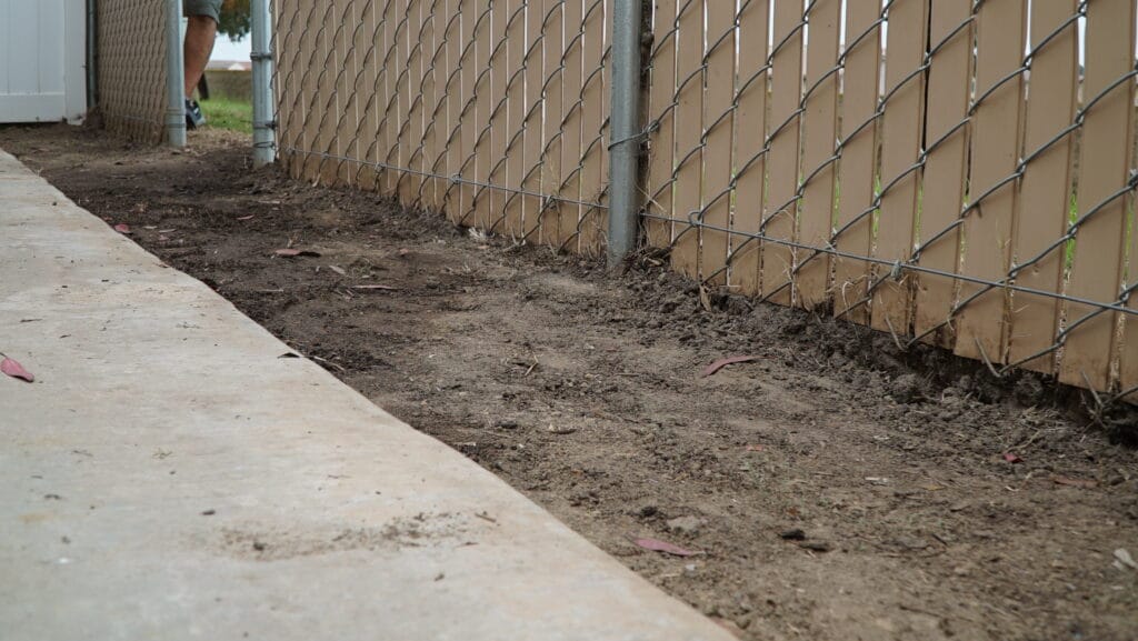 After picking up all of our materials at the San Marcos store, we got it back to the house and finished excavating the site. We opted out of using a subbase for, once again, cost and labor reasons. If you have a bigger or unleveled space, or if you need a better drainage solution, I’d recommend subbase. Subbase also helps prevent weeds and movement of the turf, so it’s definitely something to consider. I think the finished product would’ve turned out a little better if we did have a subbase underneath, but we just didn’t want to deal with it.The recommended excavation depth is 3-4 inches with a subbase. Because we didn’t use subbase, we excavated about 2 inches below the cement line because our Arizona Pro grass is 1.7″ tall, and we didn’t want there to be a huge dip going from the patio to the grass. We removed as much organic material left in the dirt as we could because as that decomposes, the turf can shift and wrinkle. We compacted the soil with a square-nosed shovel. A hand tamper would’ve worked better, but we didn’t have one.