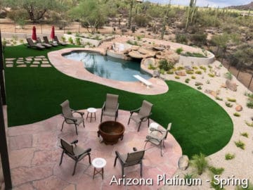 Customers also tell us they like the length of the Arizona family. With Arizona Pro checking in at 1.7 inches and its Platinum siblings each boasting a 2 inch pile height, customers love the exceptionally natural look that results. Plus, interwoven into those tall, skinny blades is the tan thatch that helps deliver an authentic, southwestern-style appearance.