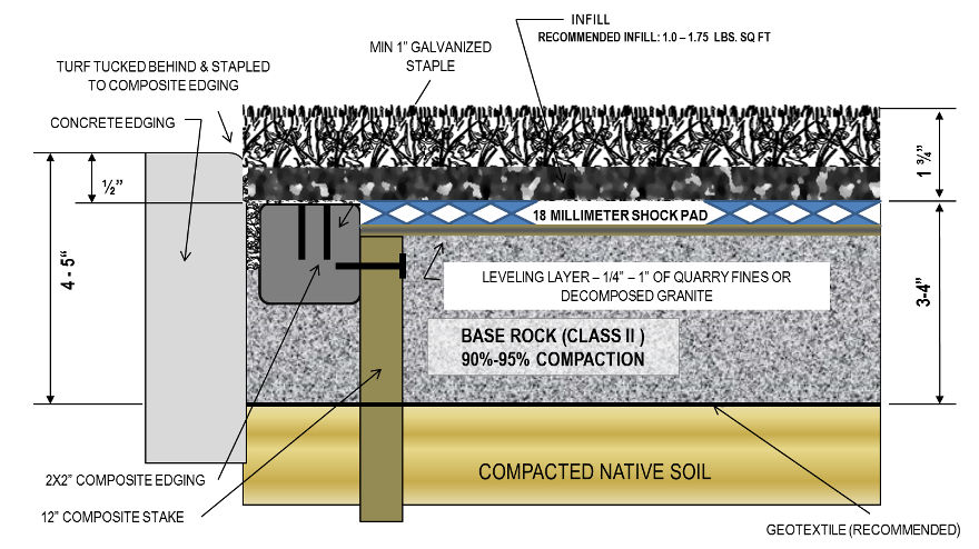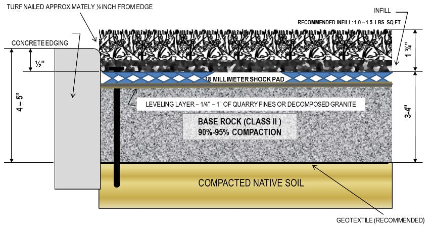 - Lay down the shock pad on top of the sub-base, you should have about 1/2 inch before reaching the height of the hard concrete outer edge.