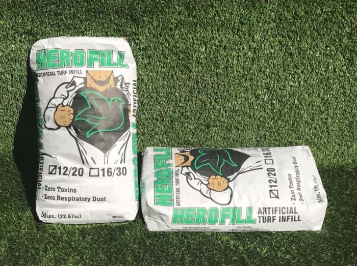HeroFill and MellowFill are considered premium-grade because of the many functions they pack. They are the most popular for putting greens and pet areas. They’re also the most expensive – around $23 per 50-pound bag.MellowFill is infused with anti-fungal protection. This fungistatic agent inhibits growth of mildew and algae. This product’s unique biocide chemistry controls odors caused by mildew, mold fungus, and algae and significantly reduces the odor caused by ammonia buildup in pet urine. This is our highest-quality infill option so it is a little pricier than our other options. MellowFill also keeps artificial grass cooler to the touch than other infills such as crumb rubber and silica sand.MellowFill prevents the ammonia buildup in pet urine while Zeolite simply “captures” the ammonia and then releases it when it rains. Additionally, any impurities in rain or hose water will reduce the effectiveness of Zeolite. So will a lack of rain.While Zeolite is effective at reducing pet odor, because of its mesh size it tends to be more susceptible to compaction than MellowFill and is not as effective at providing ballast.There are a lot of infill varieties to choose from, but we believe MellowFill is the best product with its long list of amazing features.But as always, every project is different. Contact us with any questions or visit your local Purchase Green store to talk to an artificial grass expert.