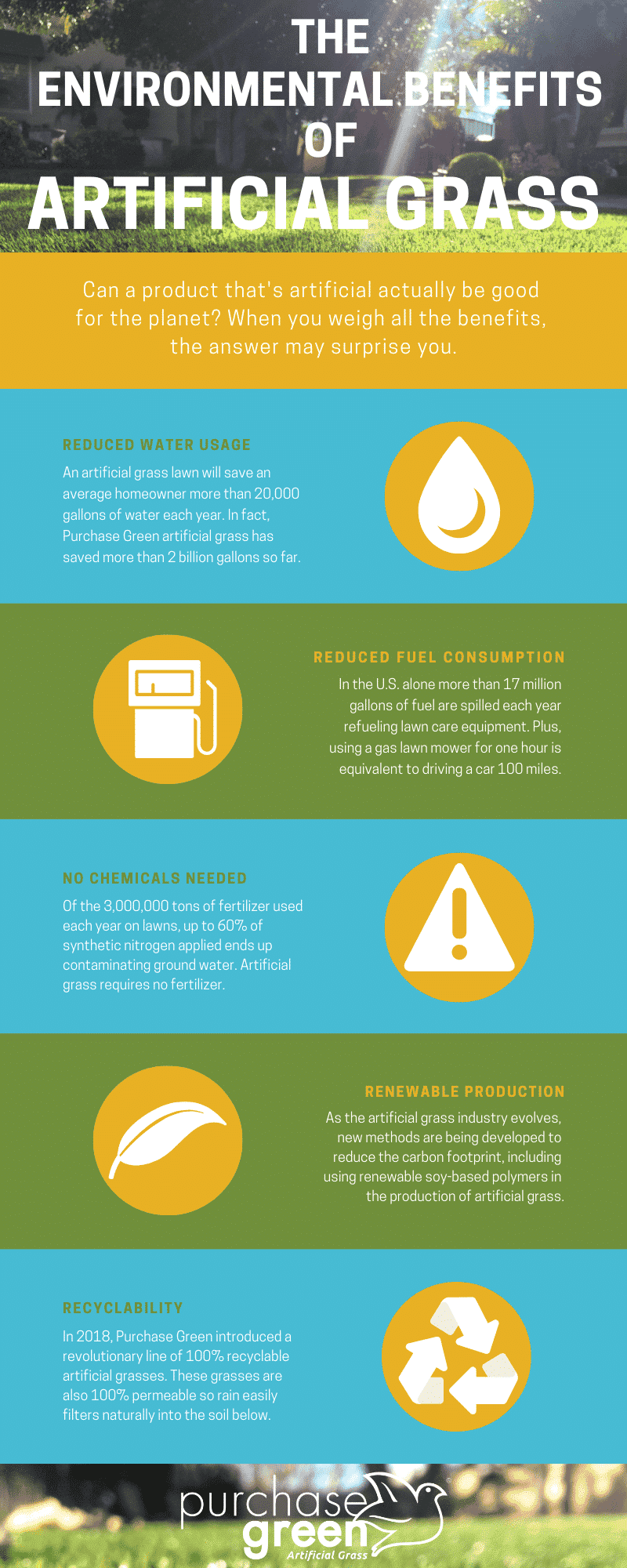 Can an artificial product actually be beneficial for the planet? In some ways everything humans make is artificial. But it’s also natural for human beings to make things! Therefore, it makes sense to look at the benefits a particular product creates. And when you really consider artificial grass, you’ll discover it provides a lot of benefits that truly make the world a greener place!