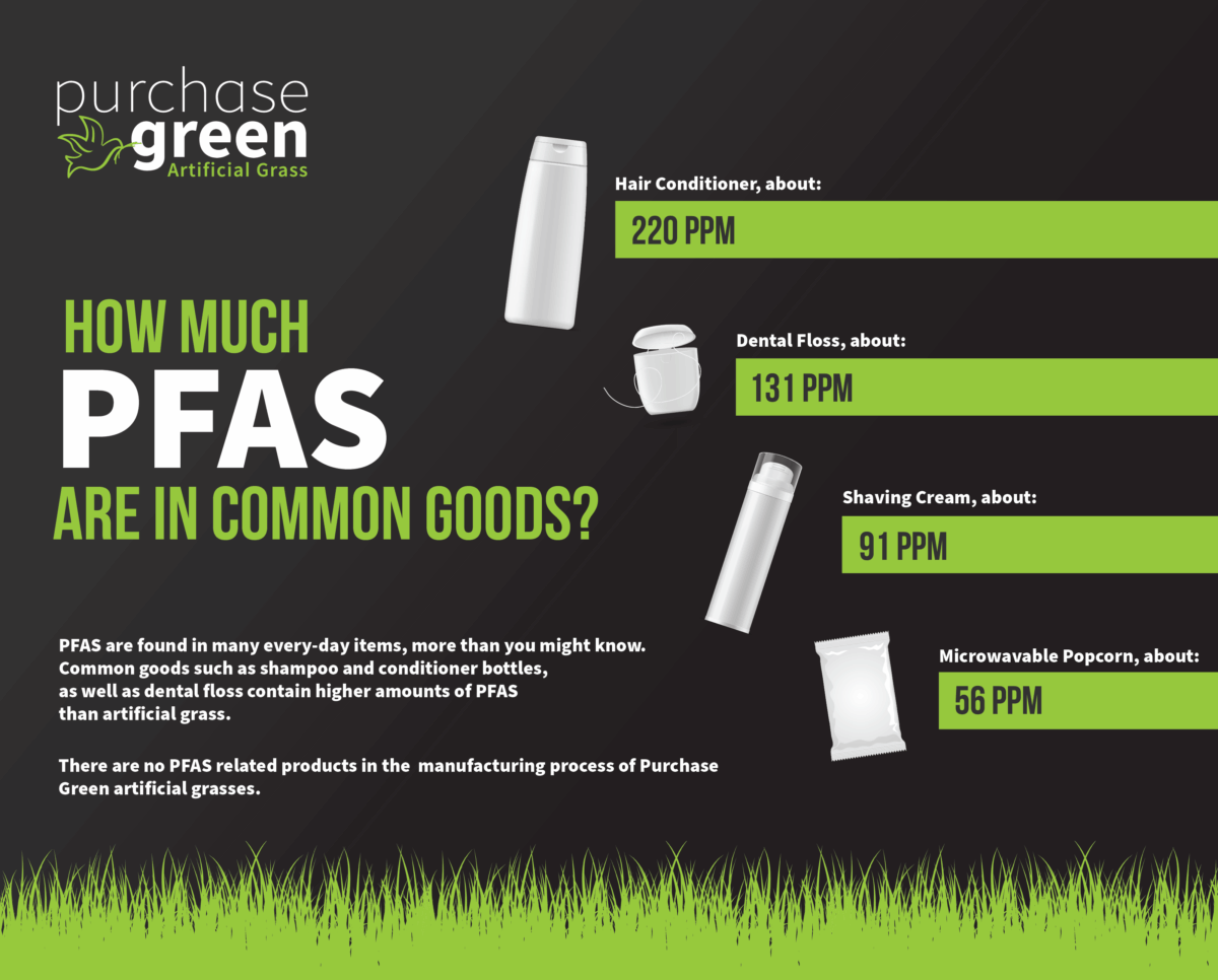 PFAS Free There are no PFAS related products in the manufacturing process of Purchase Green artificial grasses. Please visit our Product Safety Portal for additional product safety information.