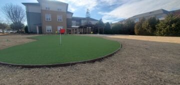 And our final installation highlight is this 5-hole putting green. They definitely took advantage of our different-colored nylon flags, using our whole line of solid white, yellow, blue, and red flags. We were happy to bring some pops of color to this open area.