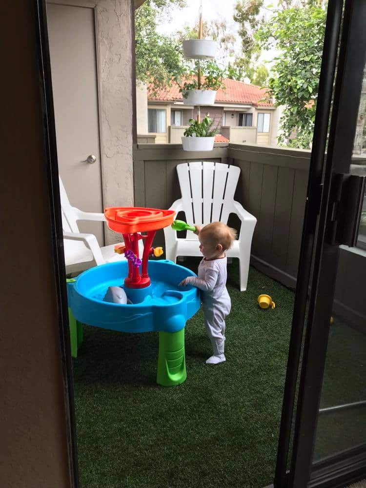 Next one up on small backyard ideas (technically a patio, but still counts) comes from @thecameramamma and shows how artificial grass drainage features make for an ideal surface for any kid’s splashy play! This is Playground Pro grass from our PG San Diego store!