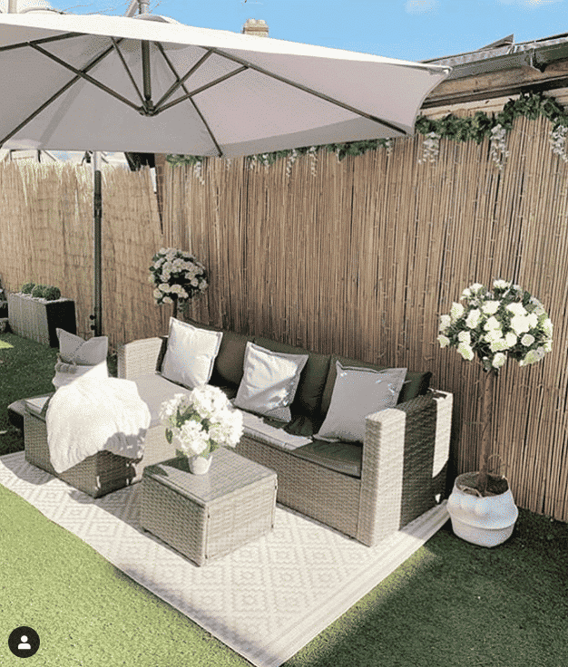 Just room for a couch or loveseat? Then you have more than enough room for some artificial grass like in this install from @our_littlegreyhome! California Native would be a nice soft grass for this application.