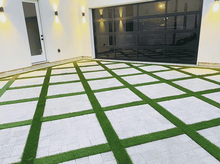 Only have space for some pavers? Well any artificial grass can help magnify your pavers/walkway like in this install from @lawrence.builders. We’d certainly recommend Vista 70 for a similar installation.