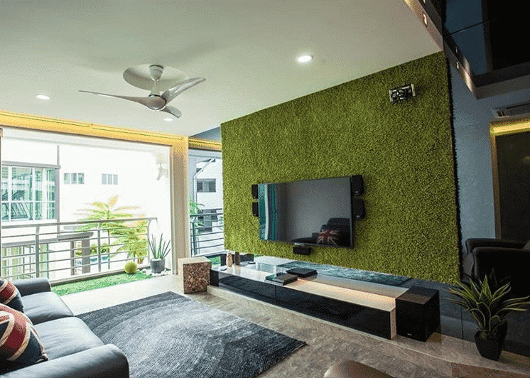 Artificial Grass doesn’t even need to be horizontal! Set up a tv or other decorative wall and use a grass like Eco Olive 50. This is definitely one of our favorite small backyard ideas! Almost no square footage required!
