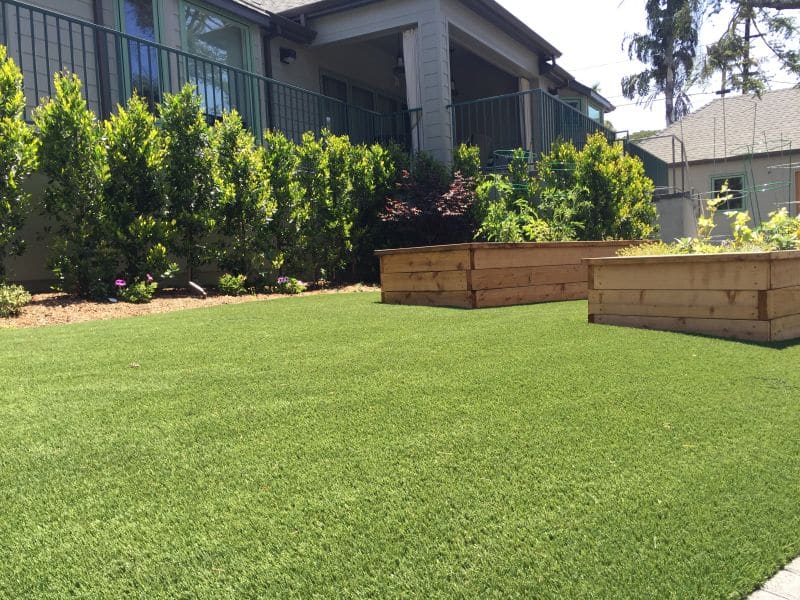 Eco Olive 80 blends perfectly with the shrubs and garden boxes in this backyard.